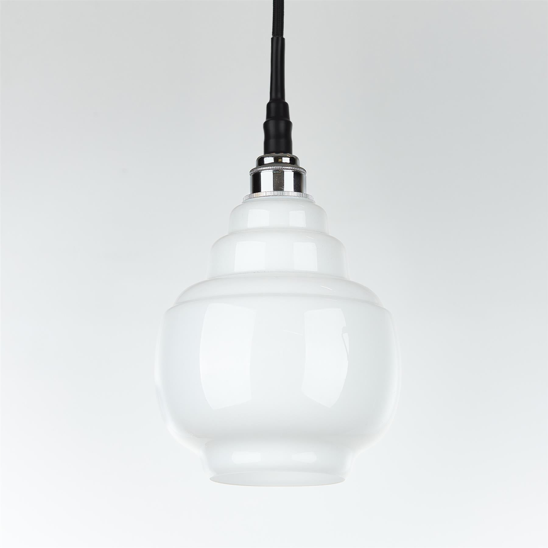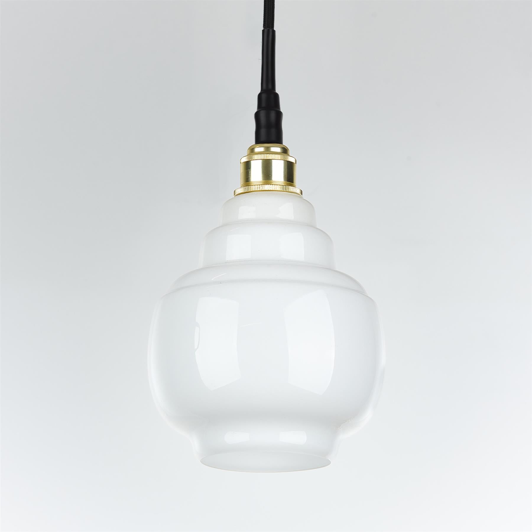 Our Barrel Bathroom Pendant adds softness and charm to bathrooms, offering warm, flattering light without feeling clinical. Designed in-house here in the UK by Mark Holloway, its stepped opal glass shade is inspired by classic vintage silhouettes, reworked into a compact, versatile modern piece. This Bathroom version has an IP44 rating, meaning it’s safe to use in Zones 2 & 3 — perfect for areas near sinks, above baths, or anywhere humidity is present.