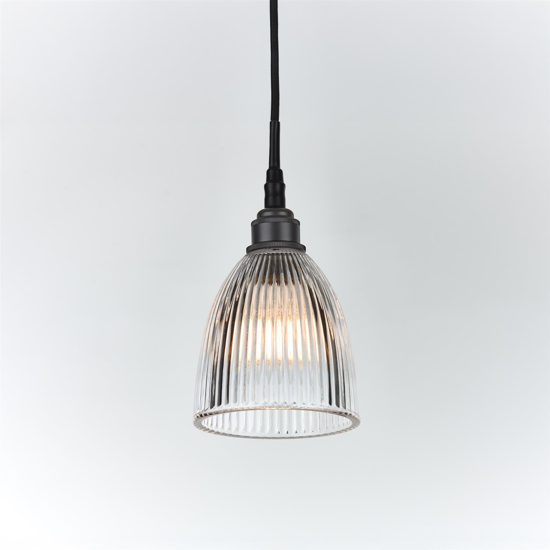 Our Elongated Prismatic Bathroom Pendant adds sparkle and clarity to bathrooms — bright enough for morning routines, soft enough for relaxed evenings. Designed in-house by Mark Holloway, the ribbed glass shade refracts light beautifully, creating a warm shimmer without harsh glare.