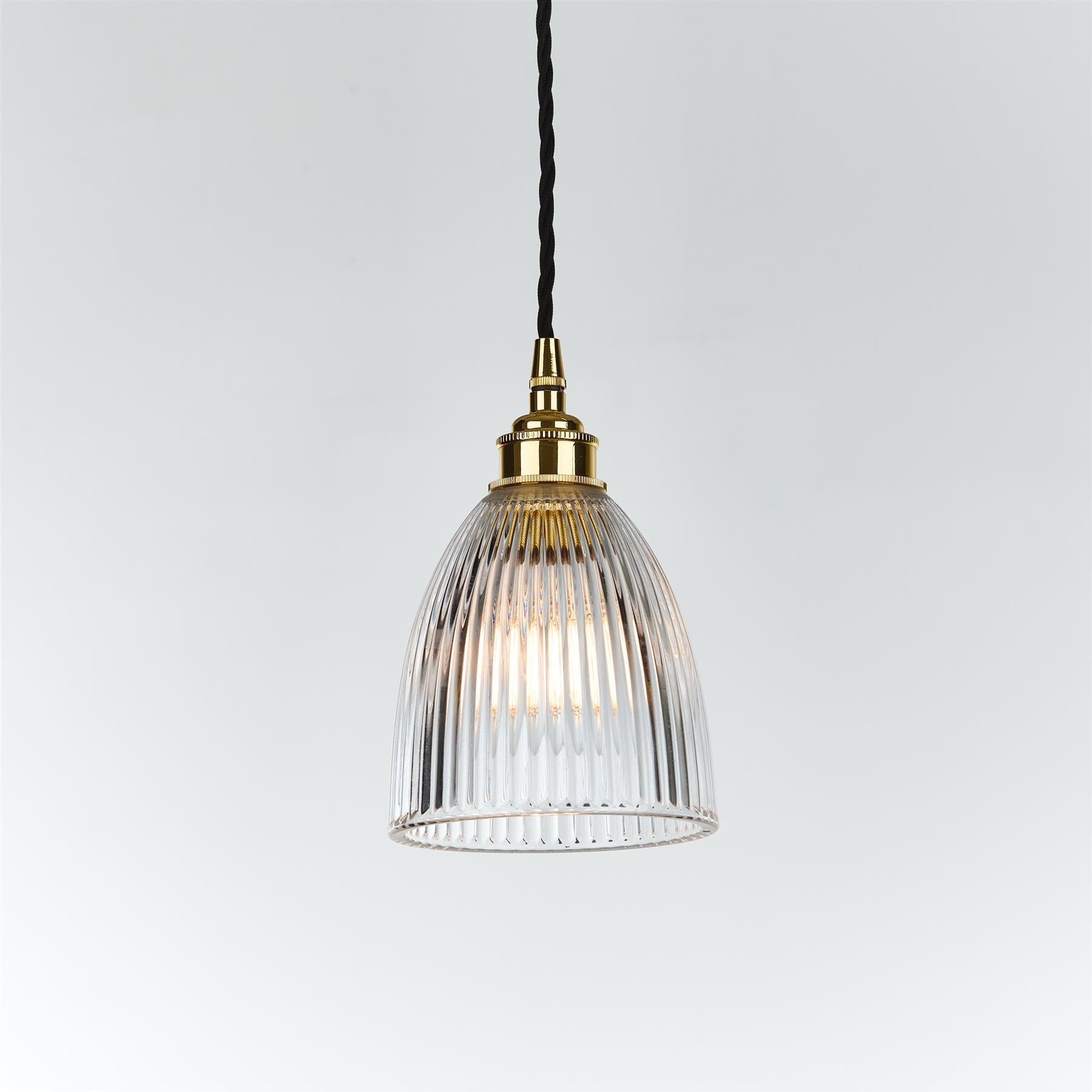 The prismatic glass gives a lovely sparkle and helps diffuse the lamp evenly, so spaces feel purposeful and welcoming. It hangs from a 1m twisted fabric cable with a matching metal rose and takes a standard E27 bulb. Like all our pendants, it’s fully dimmable, so you can switch from bright task light to soft evening glow with ease. Choose your metalwork from eight finishes : Antique Brass, Light Antique Brass, Dark Bronze, Satin Brass, Polished Brass, Polished Nickel, Polished Chrome and Matt Black.