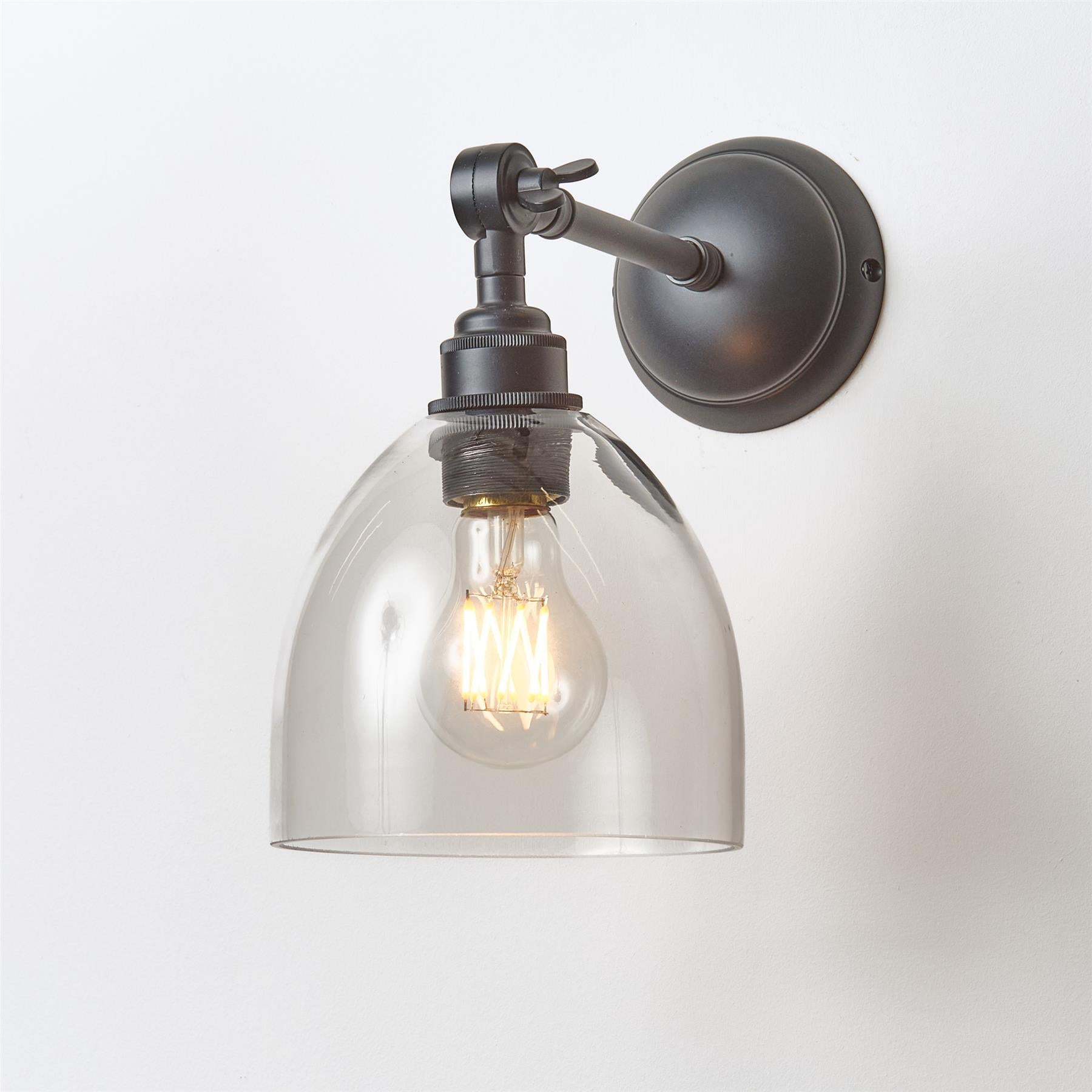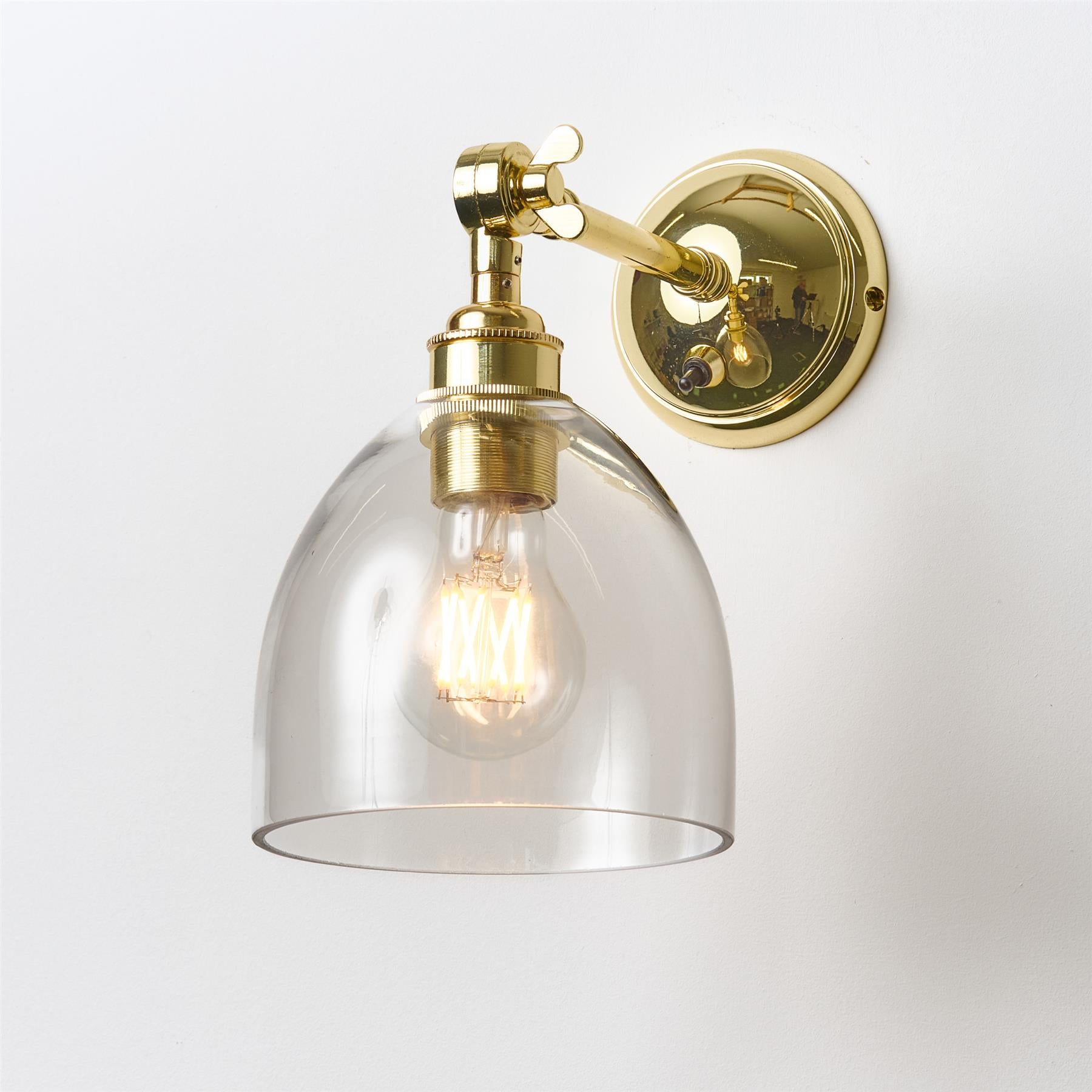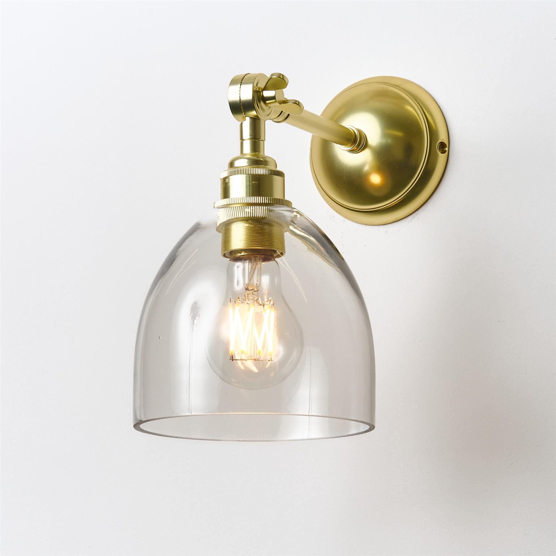 The clear glass shade measures 14cm high by 14.5cm wide, creating a soft bell shape that feels fresh and timeless. Because the glass is transparent, we recommend using a decorative filament bulb, which sits proudly inside the shade and adds extra warmth and texture. You can choose between a switchable version (with an integrated switch on the fitting) or an unswitchable version if you plan to control it from the wall. Available in seven finishes: Antique Brass, Light Antique Brass, Dark Bronze, Satin Brass, Polished Brass, Polished Nickel and Polished Chrome you can tailor the look to suit your space, whether you’re matching taps and hardware or introducing a contrasting accent.